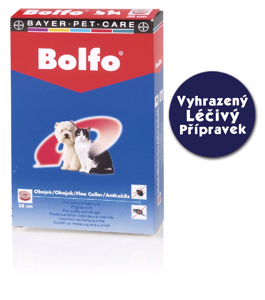 Působení obojku: Prášek účinné látky propoxur se postupně přes póry obojku dostává na srst zvířete.Část se uchytí na kůži zvířete, kterou chrání před útokem blech a klíšťat, část padá na zem kde brání přežívání blech a jejich vývojových stádií. Kudy zvíře projde, pracuje jako práškovací letadlo - tím chrání sebe i své okolí lehce, jednoduše a dlouhou dobu. Blechy i klíšťata jsou usmrcena při pouhém kontaktu se psem nebo kočkou, to znamená, že se nestihne ani zakousnout, proto nemůže dojít k alergizaci ani k přenosu nebezpečných nemocí. Na Vaše miláčky se nedostanou ani blechy od zablešeného kamaráda, který nemá to štěstí nosit antiparazitární obojek od Bayera. Psi i kočky s obojkem Bolfo se můžou koupat, po uschnutí je obojek znovu účinný. Pokud je obojek zamaštěný - není na povrchu pudrově bílý je potřeba ho omýt, aby znovu plně působil.
