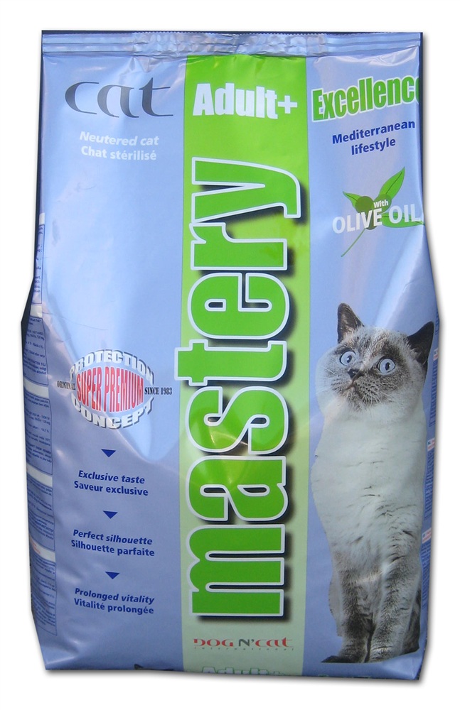Excellence s olivovým olejem obsahuje 33 % bílkovin a 18 % tuku, je to superprémiová formule Mastery.