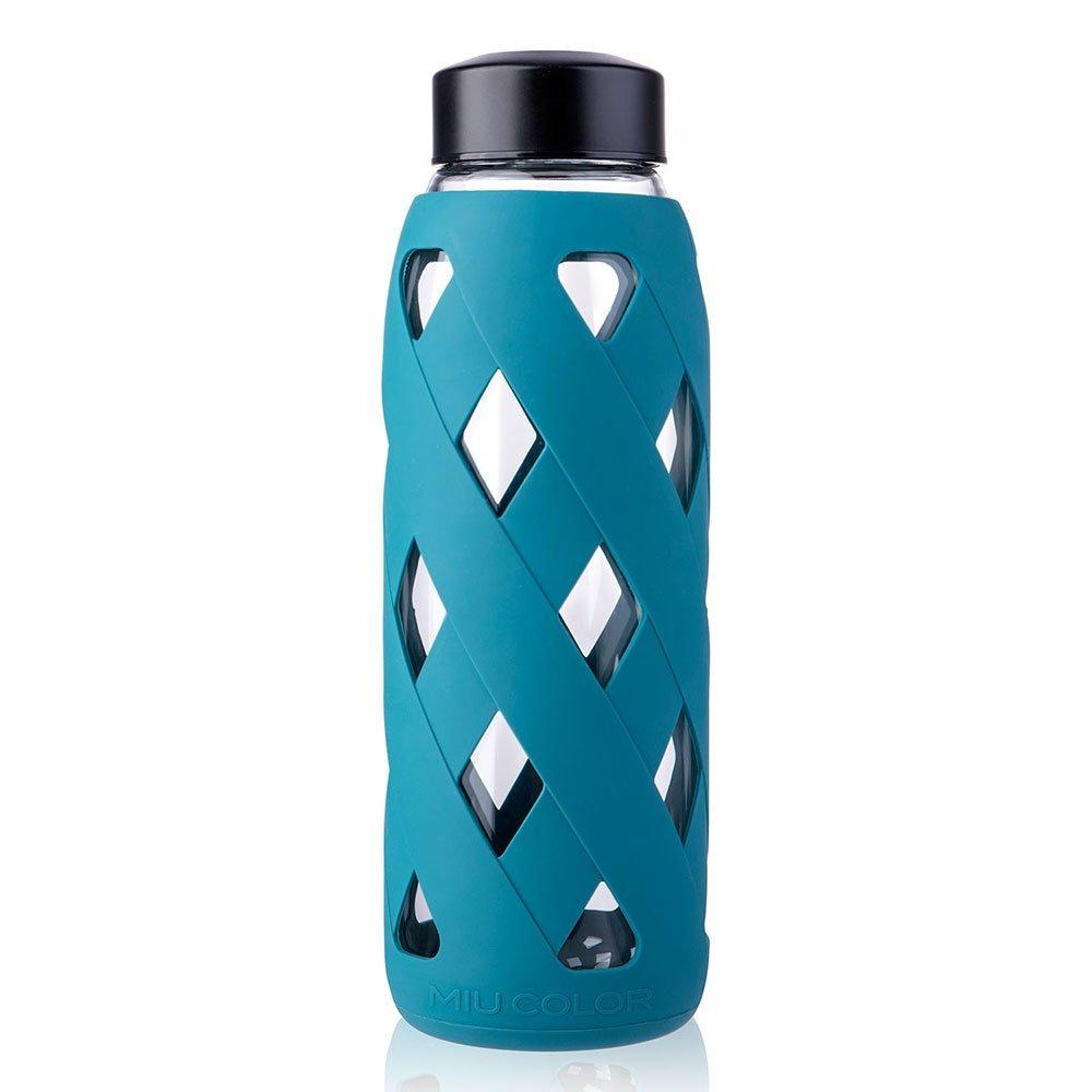 Miu Color láhev se silikonovým obalem azurová sklo 800ml