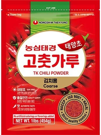 Velmi kvalitní mletá paprika od korejské značky Nongshim. Baleno v znovuuzavíratelném sáčku. Pro uchování čerstvosti výrobce doporučuje otevřené balení skladovat v lednici.