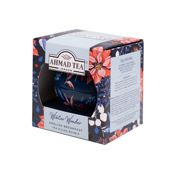 Elegantní vánoční ozdoba ve tvaru kuličky, která ukrývá 25 g sypaného čaje English Breakfast. Tento dárek je ideální volbou pro všechny milovníky čaje. Balení s motivem květů a větviček v zimních barvách dodá kouzlo každému vánočnímu stromku.