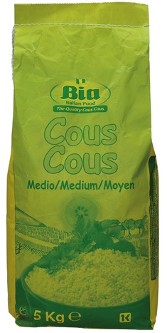 Bia Cous Cous from durum wheat je tradiční italský kuskus (couscous) vyrobený z durum semoliny (krupice z tvrdé pšenice) – tedy z kvalitní pšeničné suroviny, která se spařuje, napařuje a suší do malých zrníček.
